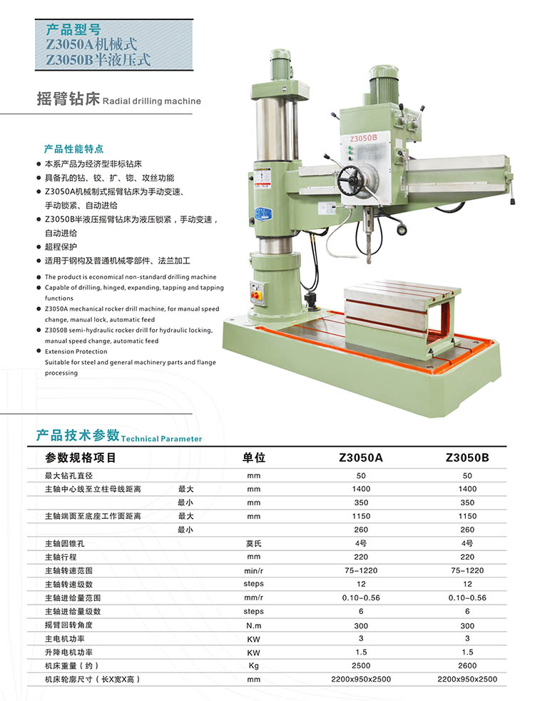 Z3050A机械式、Z3050B半液压摇臂钻床